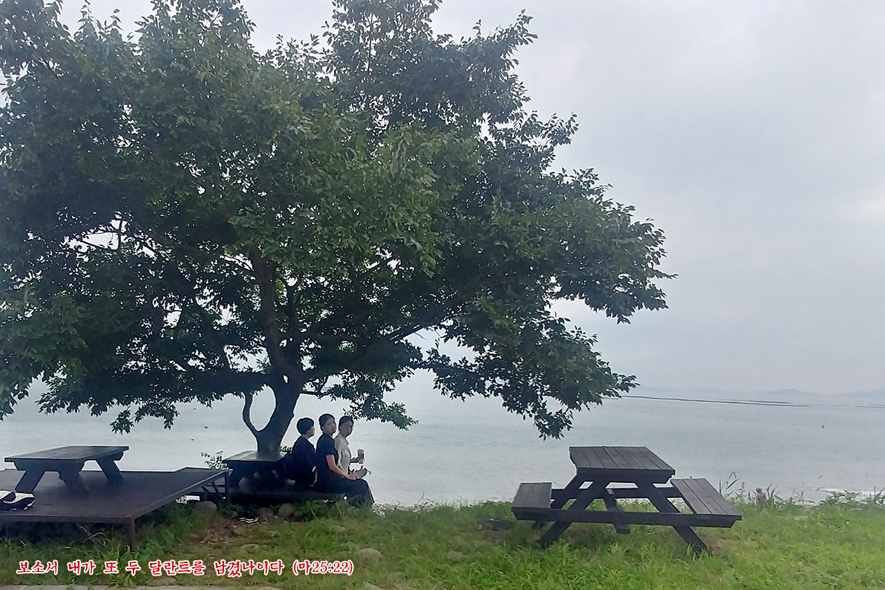 7.(우리) 2달란트 받은 종도 와서 말했다. ‘주인님, 주인님은 제게 2달란트를 맡기셨습니다. 자, 보십시오. 제가 2달란트를 더 벌었습니다.’
