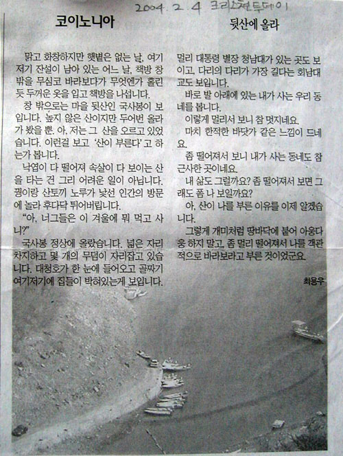 [크리스천투데이]2004.2.4 - 뒷산에 올라