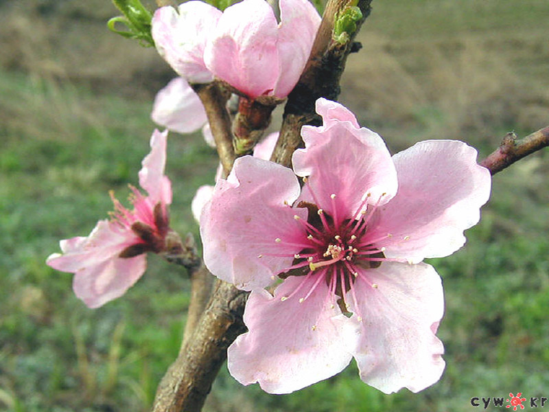 봄에 우리나라 방방곡곡 산천에서 쉽게 볼 수 있는 꽃이지만 의외로 사람들이 다른 비슷한 봄꽃들과 많이 혼동하는 꽃입니다. 우리집 밭 언덕에서 해마다 연분홍 화려한 꽃을 피우는 복사꽃 사진을 찍었습니다.